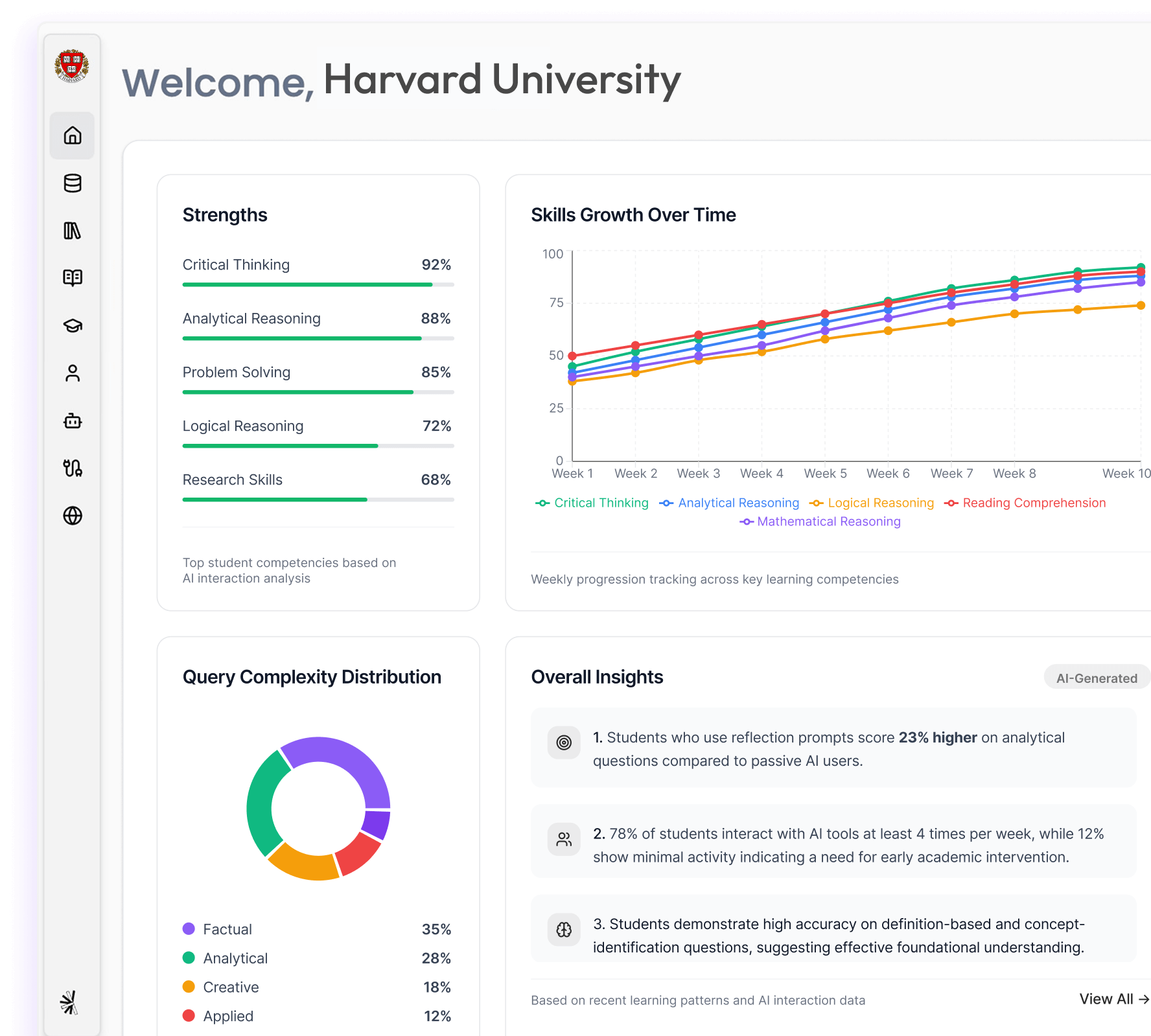 Measure how students learn with AI through observable skills, outcomes and progress.